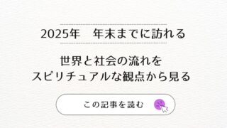 一般 2025年末までに訪れる世界と社会の流れをスピリチュアルの観点から見る 2020年以降、私たちは「風の時代」に入ったと言われています。物質的な豊かさを追い求めてきた土の時代から、情報や人とのつ... 一般思想